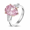 Ring in white gold with ‘fancy pink‘ pear shaped diamond and taper cut diamonds