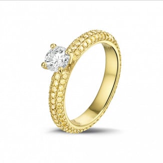 0.50 carat solitaire ring (half set) in yellow gold with yellow side diamonds